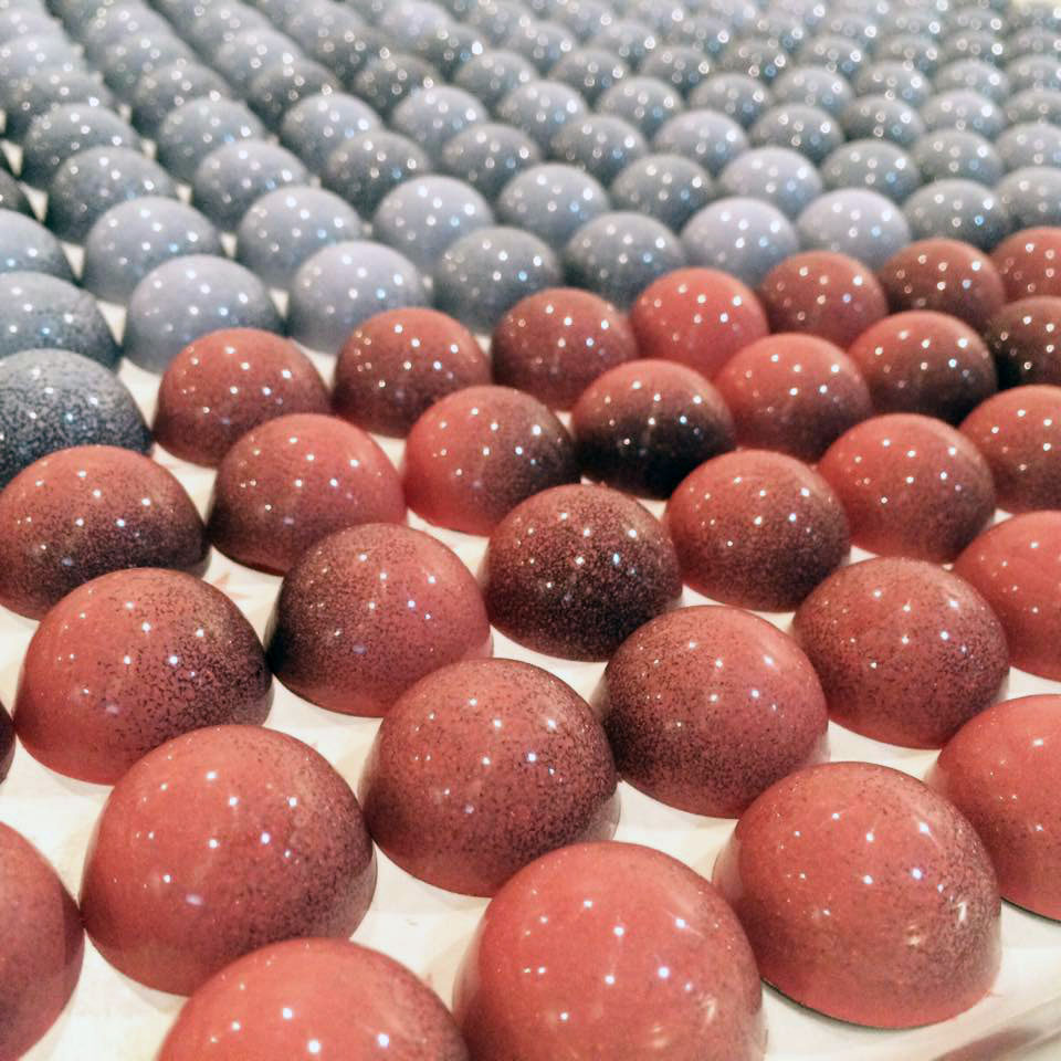 Sus productos, son variados, en sabor y color. Los bombones, que son chocolates rellenos, los hacen en forma de media esfera que combinan, o no, el chocolate con otros ingredientes. Éstos son decorados a mano con pigmentos vegetales y manteca de cacao. Entre la mezclas que puedes probar están: ganache de chocolate blanco con vainilla y piñón (0% cacao), caramelo y sal (45% cacao), ganache de chocolate con pasta de avellanas (65% cacao), entre otros.