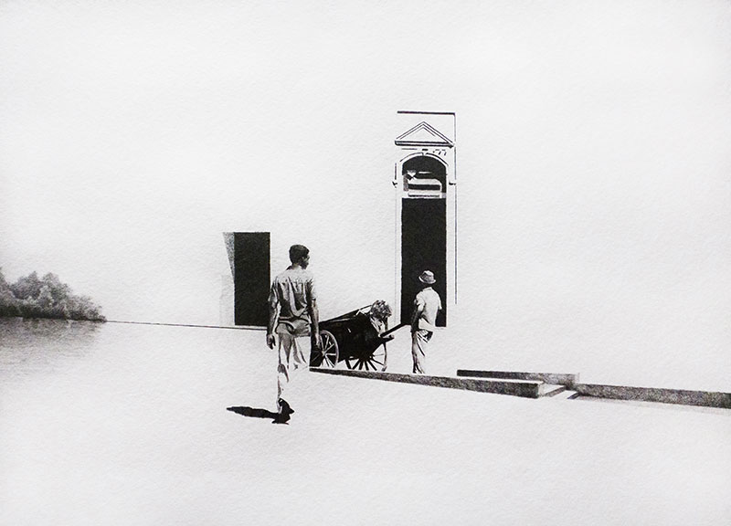 Los dibujos a lápiz fragmentados se combinaron para formar una narración del artista, así utiliza el espacio negativo para rellenar los contornos de edificios, aceras, carreteras y paredes que le da una pista de que existen en el tiempo que se suma a su algo surrealista. Los personajes de França fueron probablemente tomados de su memoria individual de situaciones pasadas y presentes o de imágenes fotográficas que ilustró en su estudio para formar una historia que espera que sus espectadores puedan entender.